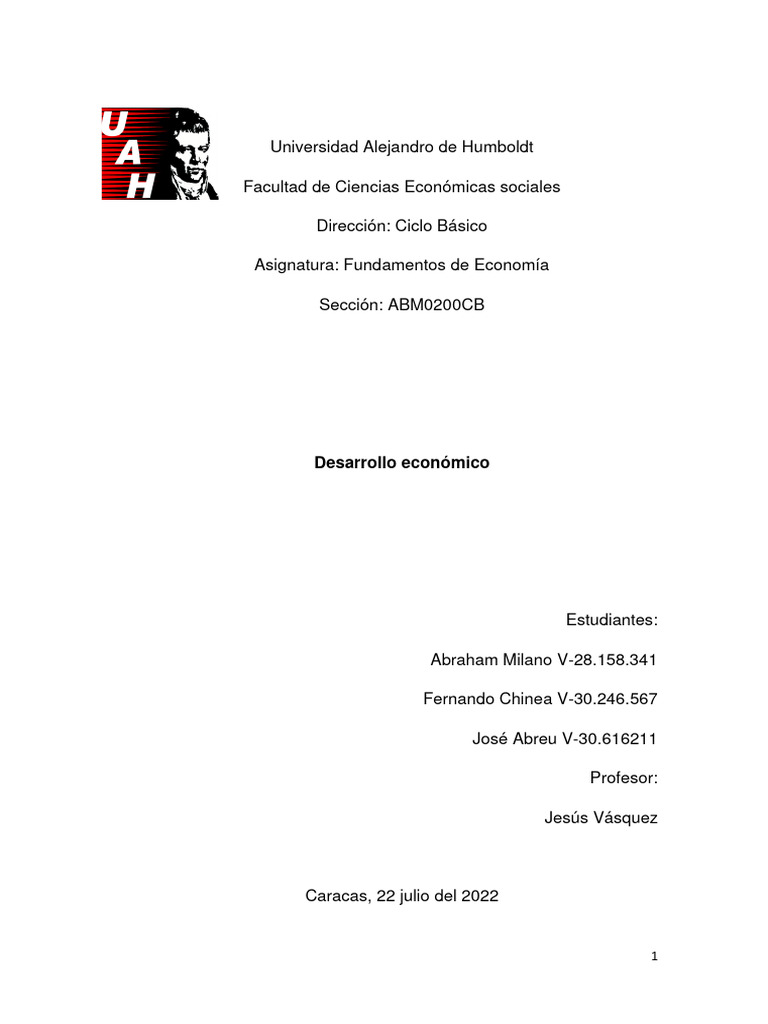 Asignatura: Fundamentos de Economía