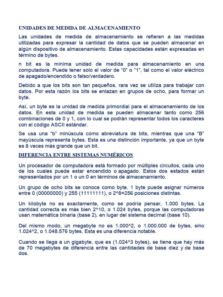 UNIDADES DE MEDIDA DE ALMACENAMIENTO