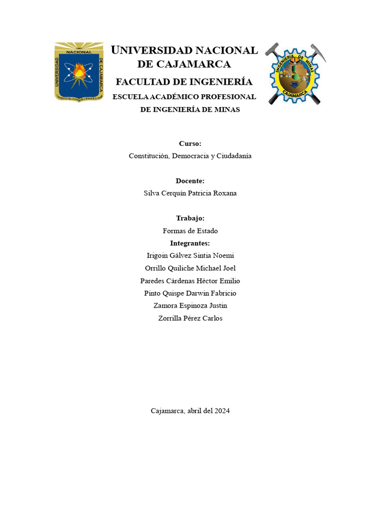 a. En cuanto a las formas de estado tenemos a la Democracia la cual