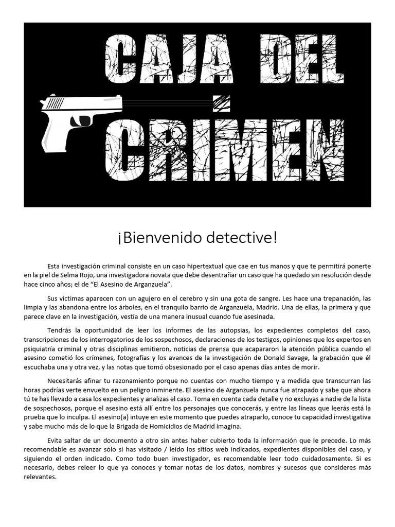 Esta investigación criminal consiste en un caso hipertextual que cae en tus manos y que te permitirá ponerte