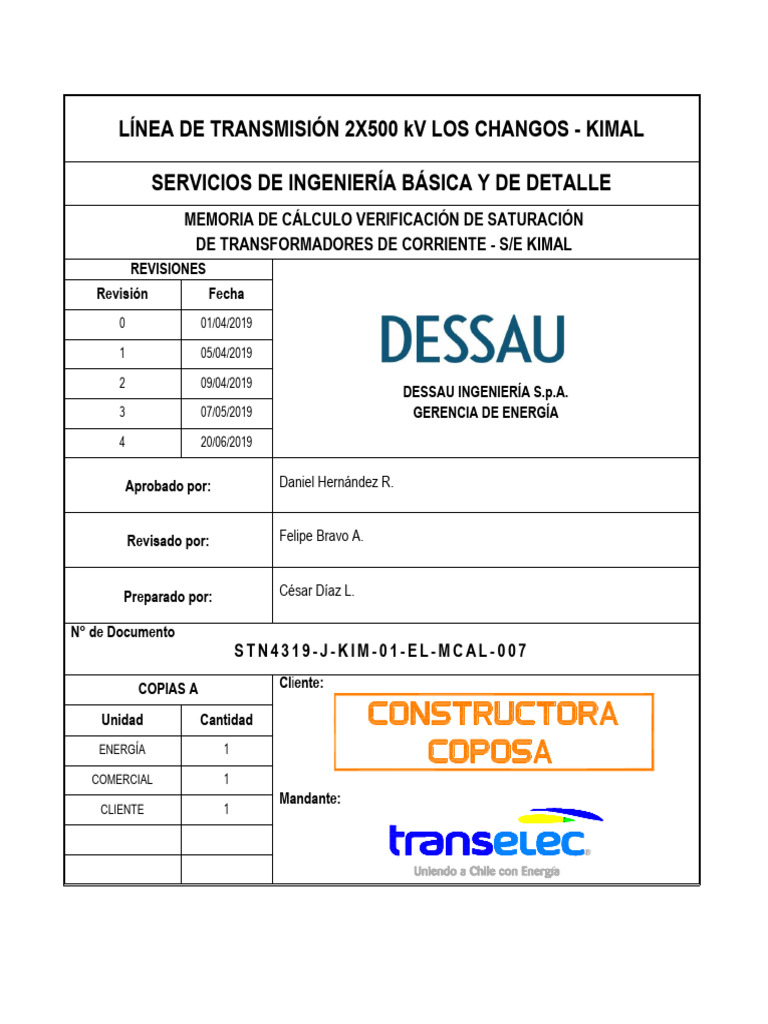 EL-MCAL-007 MEMORIA DE CÁLCULO VERIFICACIÓN DE SATURACIÓN DE TT/CC. – S/E KIMAL