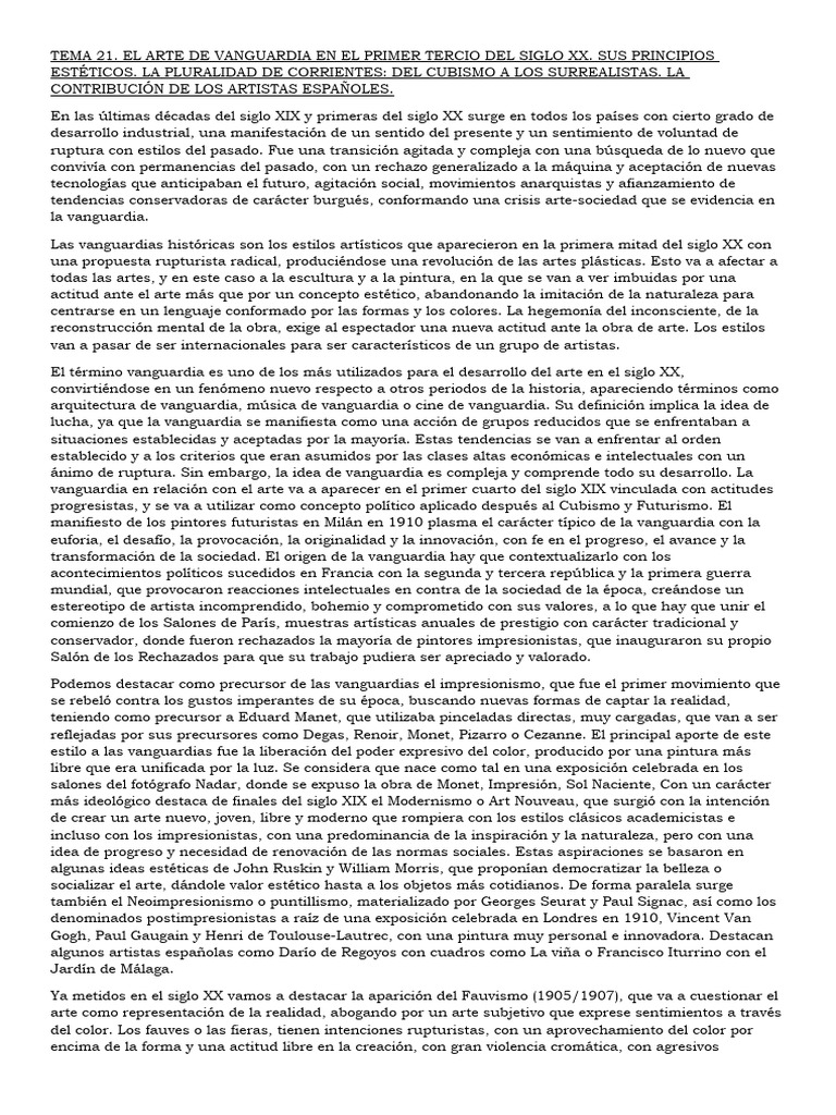 TEMA 21. EL ARTE DE VANGUARDIA EN EL PRIMER TERCIO DEL SIGLO XX.