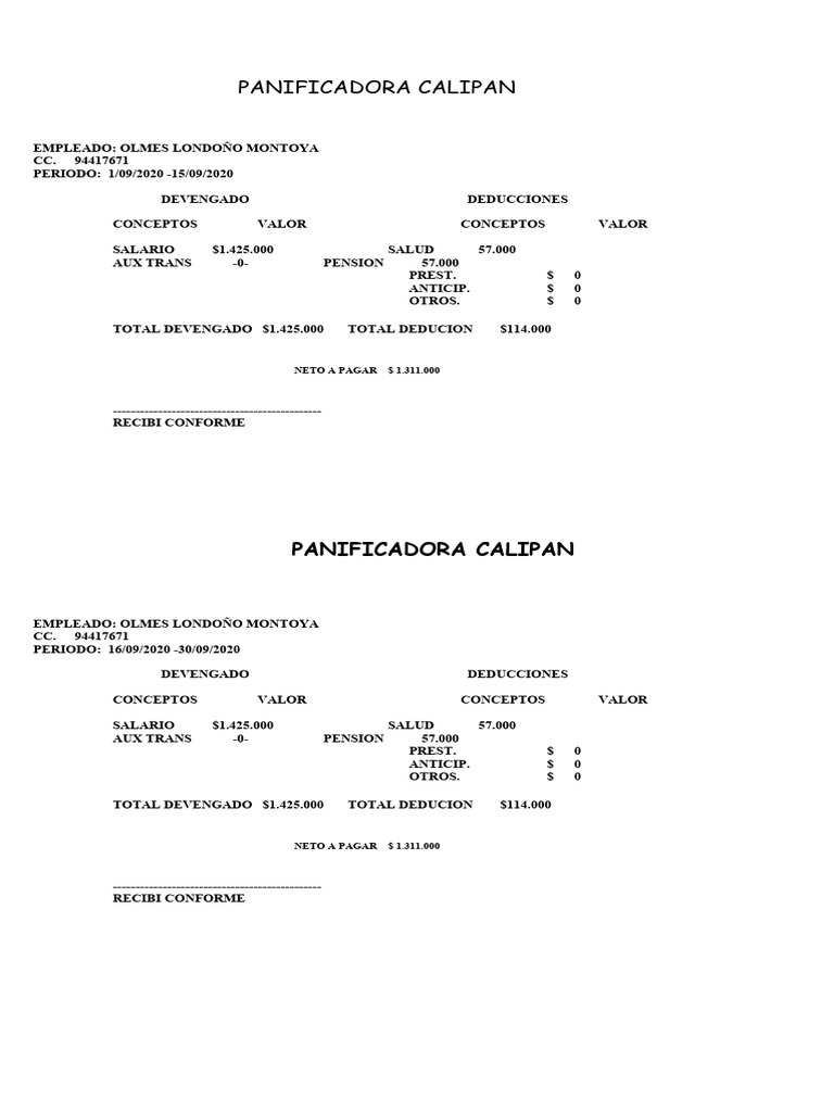 RECIBI CONFORME