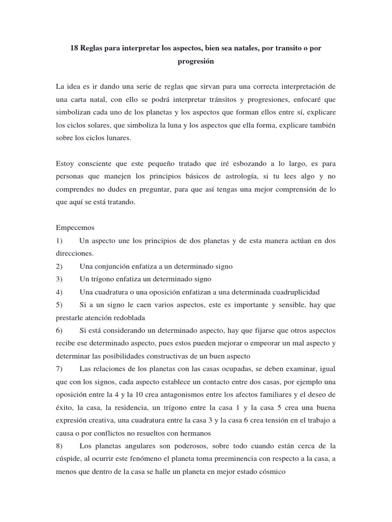 18 Reglas para interpretar los aspectos, bien sea natales, por transito o por