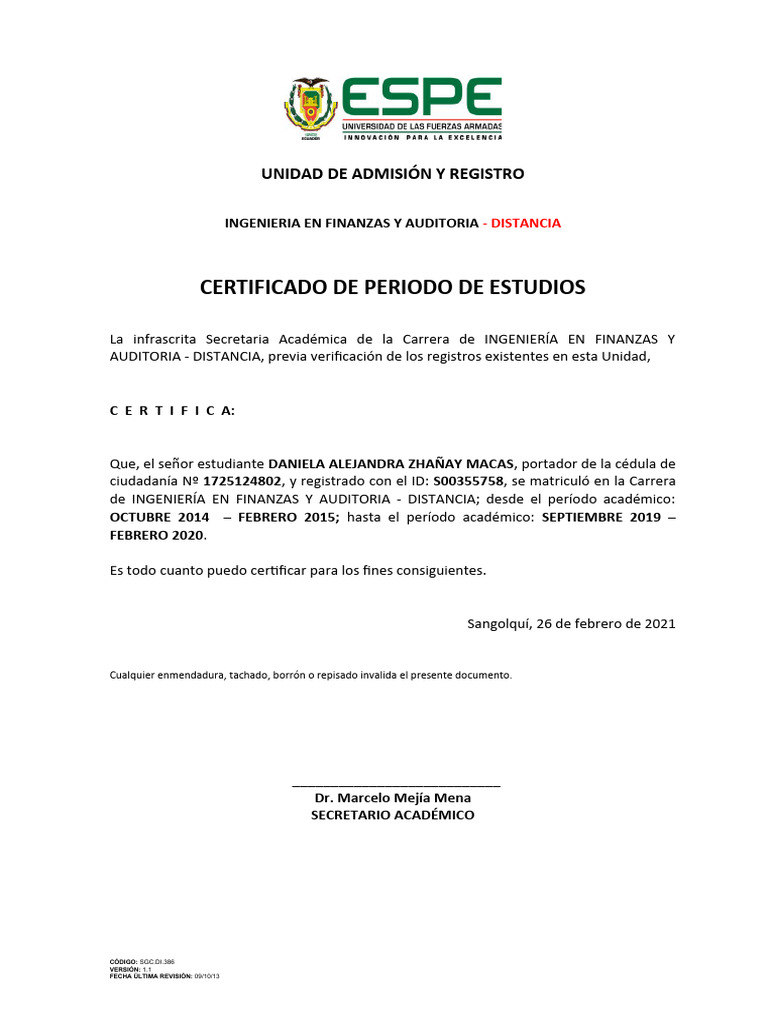CERTIFICADO DE PERIODO DE ESTUDIOS