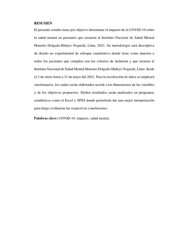 Palabras clave: COVID-19, impacto, salud mental.