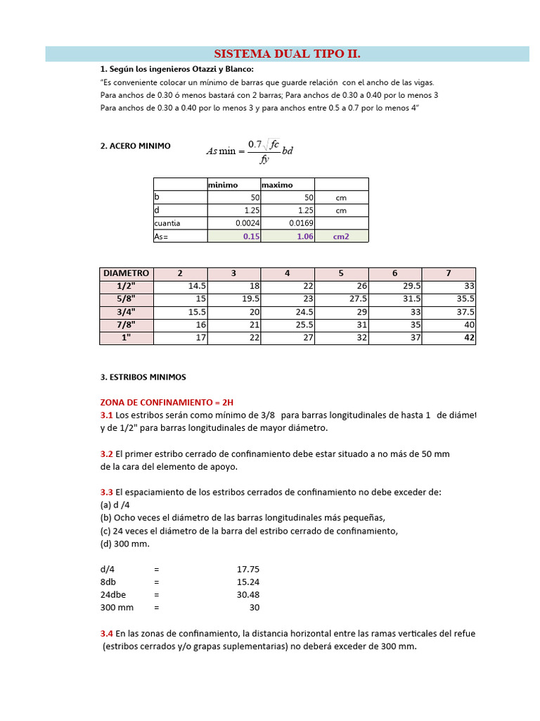 Para anchos de 0.30 ó menos bastará con 2 barras; Para anchos de 0.30 a 0.40 por lo menos 3