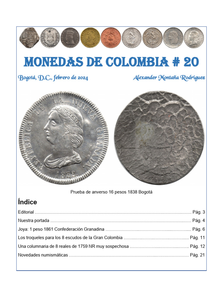 Joya: 1 peso 1861 Confederación Granadina …………………...……………….....………..... Pág. 6