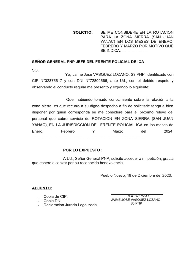 Yo, Jaime Jose VASQUEZ LOZANO, S3 PNP, identificado con