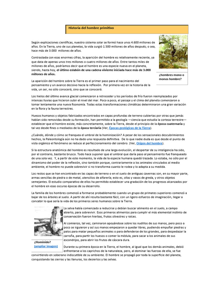 transcurridos desde la aparición del hombre sobre la Tierra, el hombre prehistórico sólo ocuparía las ocho últimas