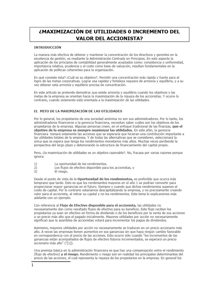 de la empresa y de los accionistas teniendo en cuenta que la maximización de utilidades no