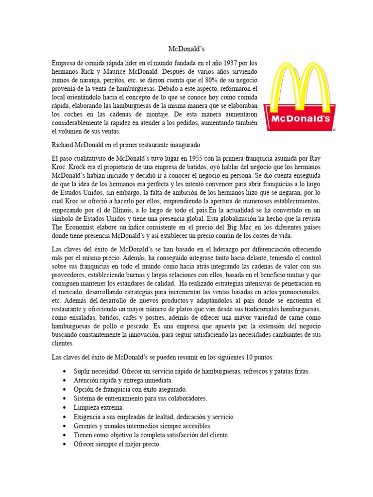 Las claves del éxito de McDonald’s se pueden resumir en los siguientes 10 puntos: