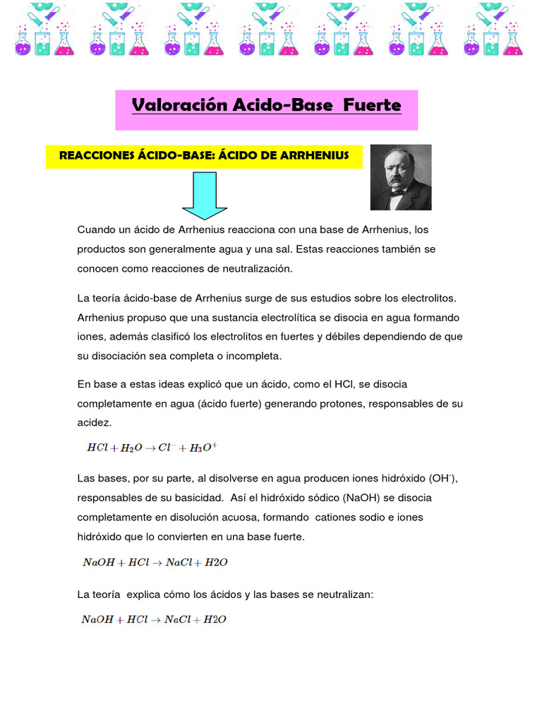 REACCIONES ÁCIDO-BASE: ÁCIDO DE ARRHENIUS