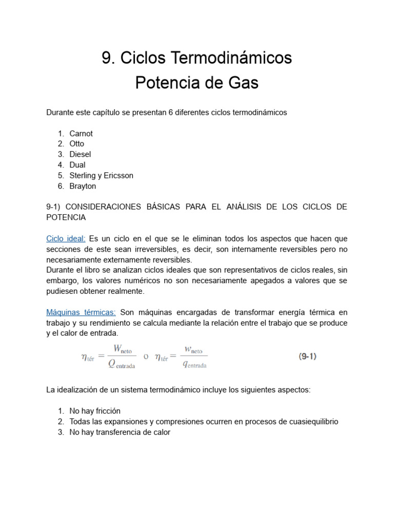 Durante este capítulo se presentan 6 diferentes ciclos termodinámicos