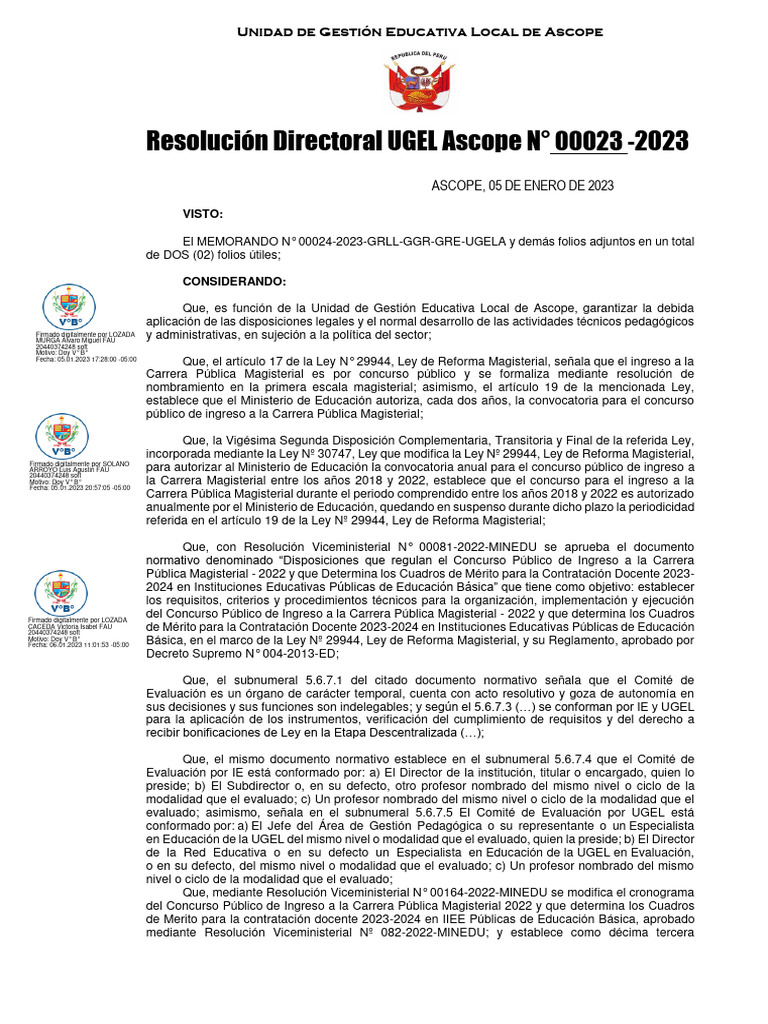 Resolución Directoral UGEL Ascope N° 00023 -2023