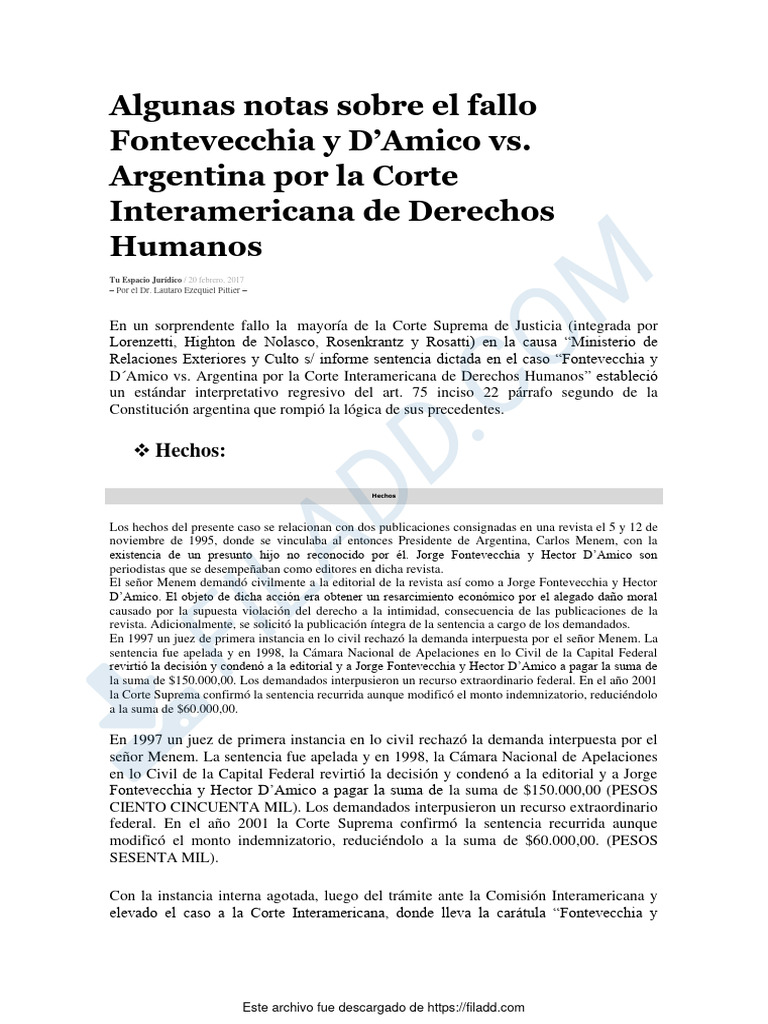 D´Amico vs. Argentina por la Corte Interamericana de Derechos Humanos” estableció