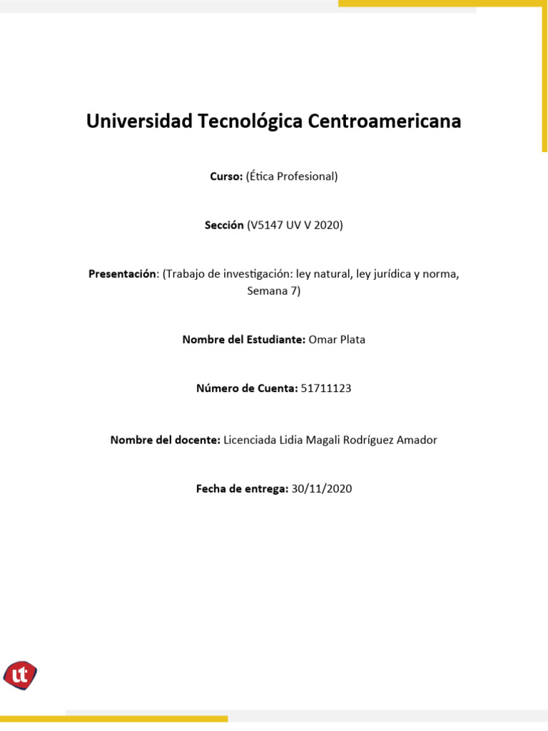 Presentación: (Trabajo de investigación: ley natural, ley jurídica y norma,