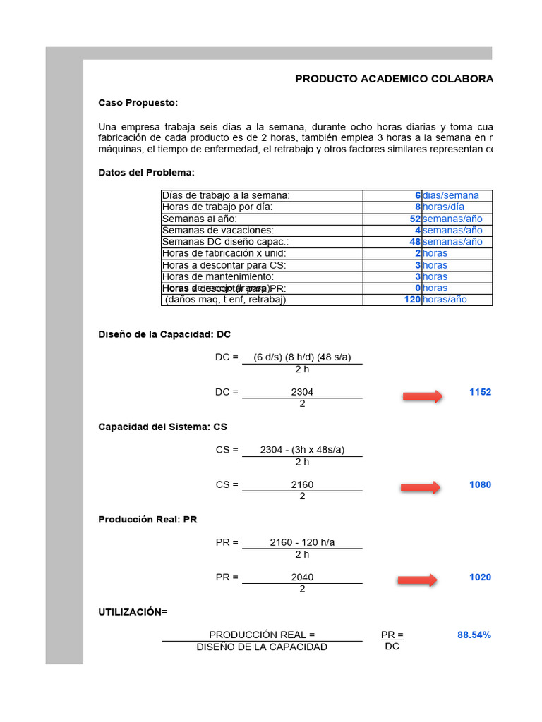 (DISEÑO CAPACIDAD) (UTILIZACIÓN) (EFICIENCIA) = 963.33