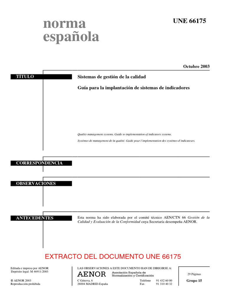 EXTRACTO DEL DOCUMENTO UNE 66175
