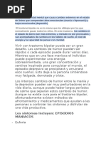 Definición: El trastorno bipolar es un trastorno del estado de ánimo caracterizado por cambios