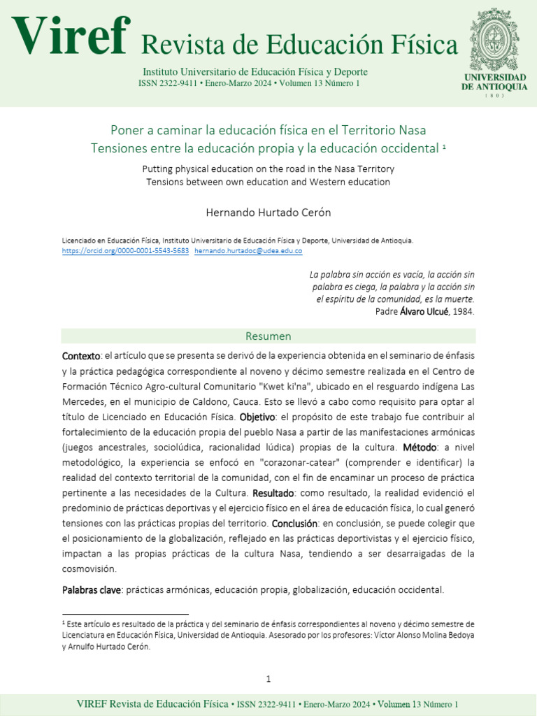 Educación Física y Cultura Nasa: Tensiones