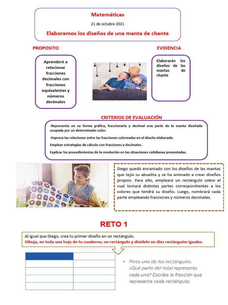 -Representa en su forma gráfica, fraccionaria y decimal una parte de la manta diseñada