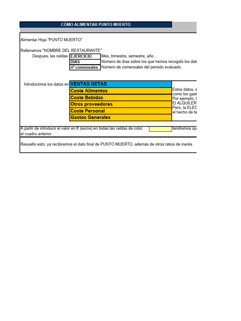 Alimentar Hoja "PUNTO MUERTO"