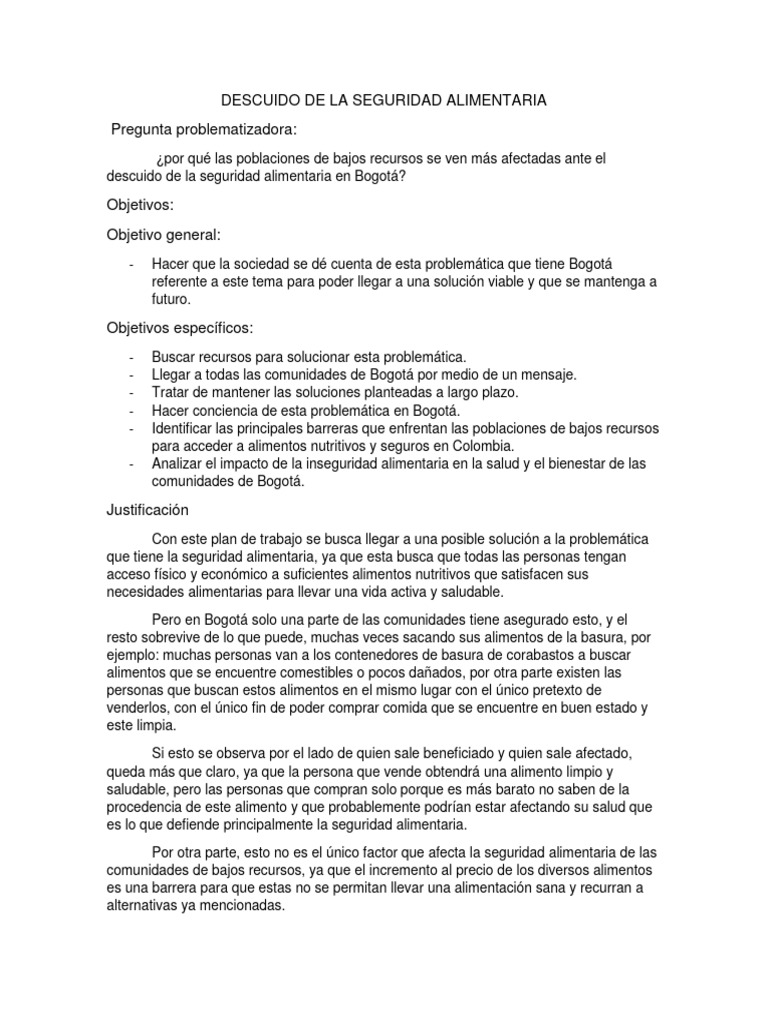 - Analizar el impacto de la inseguridad alimentaria en la salud y el bienestar de las
