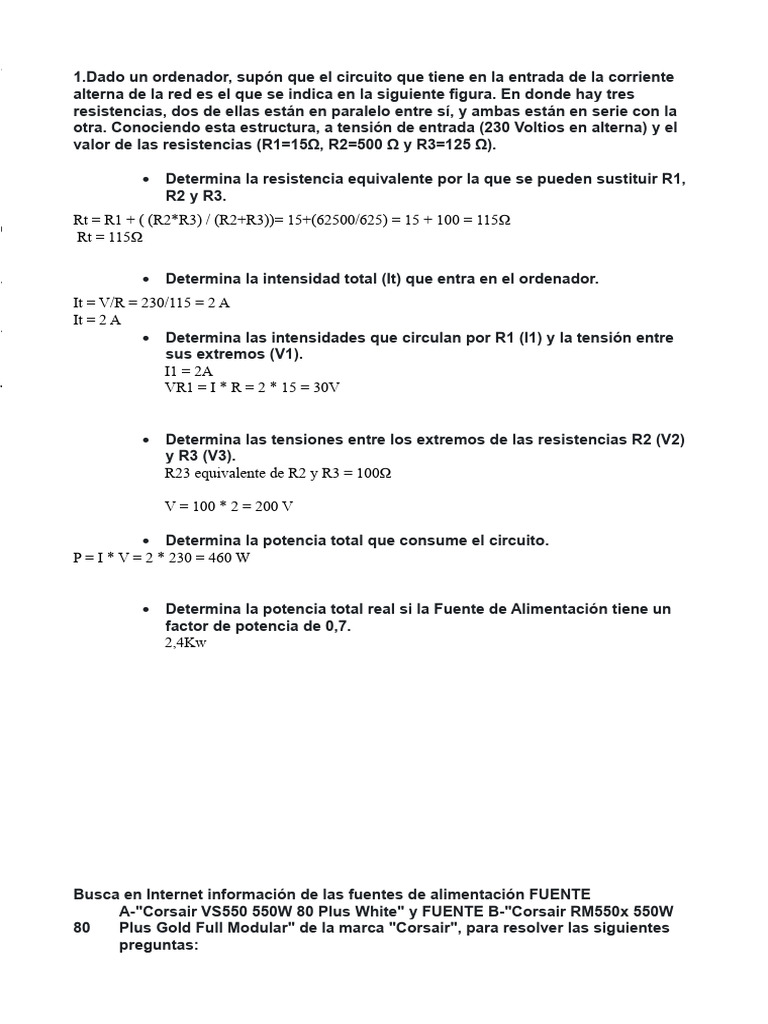 Dado un ordenador, supón que el circuito que tiene en la entrada de la corriente