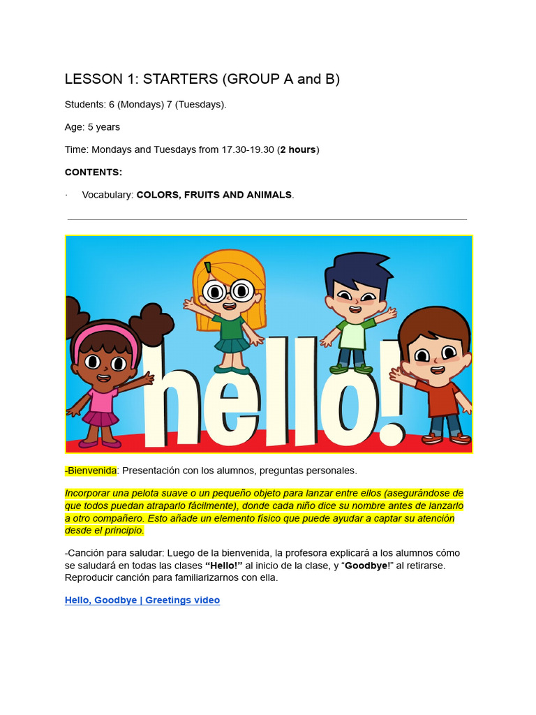 LESSON 1: STARTERS (GROUP A and B)