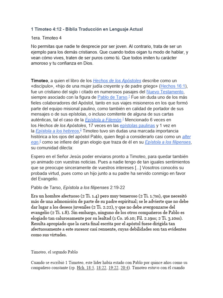 Cuando escribe su primera carta a este líder, Pablo le llama verdadero hijo en la fe (1 Ti.