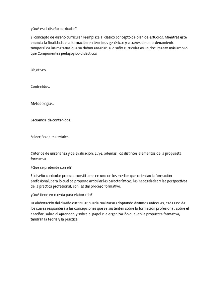 La elaboración del diseño curricular puede realizarse adoptando distintos enfoques, cada uno de