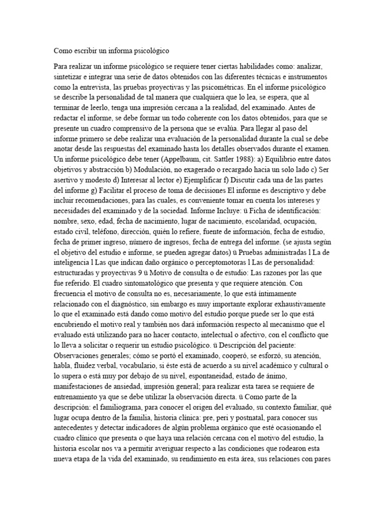 Un informe psicológico debe tener (Appelbaum, cit. Sattler 1988): a) Equilibrio entre datos