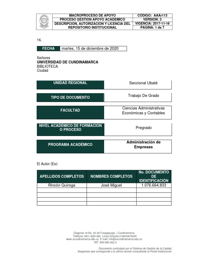 Asegúrese que corresponde a la última versión consultando el Portal Institucional