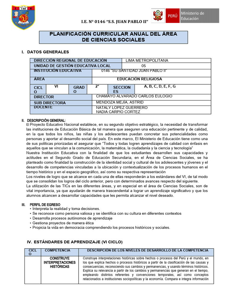 PLANIFICACIÓN CURRICULAR ANUAL DEL ÁREA