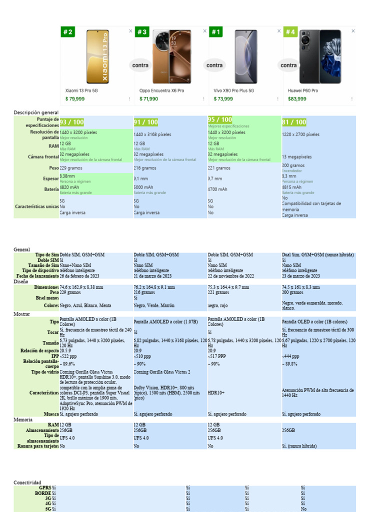 especificaciones 93 / 100 91 / 100 Mejores especificaciones