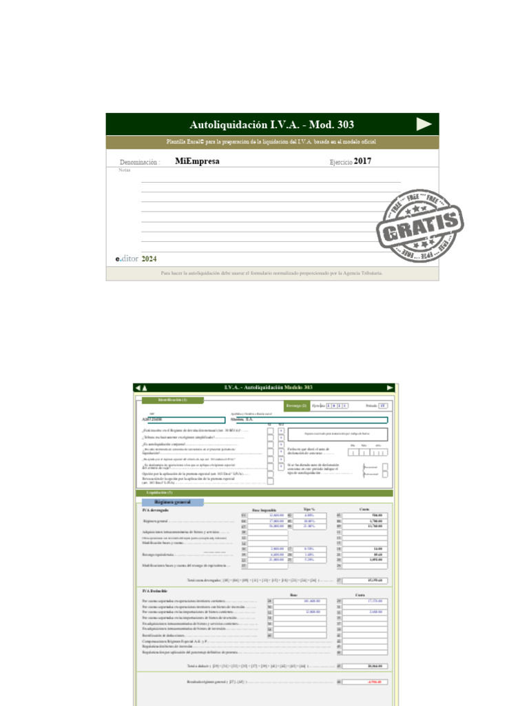 Plantilla Excel© para la preparación de la liquidación del I.V.A. basada en el modelo oficial