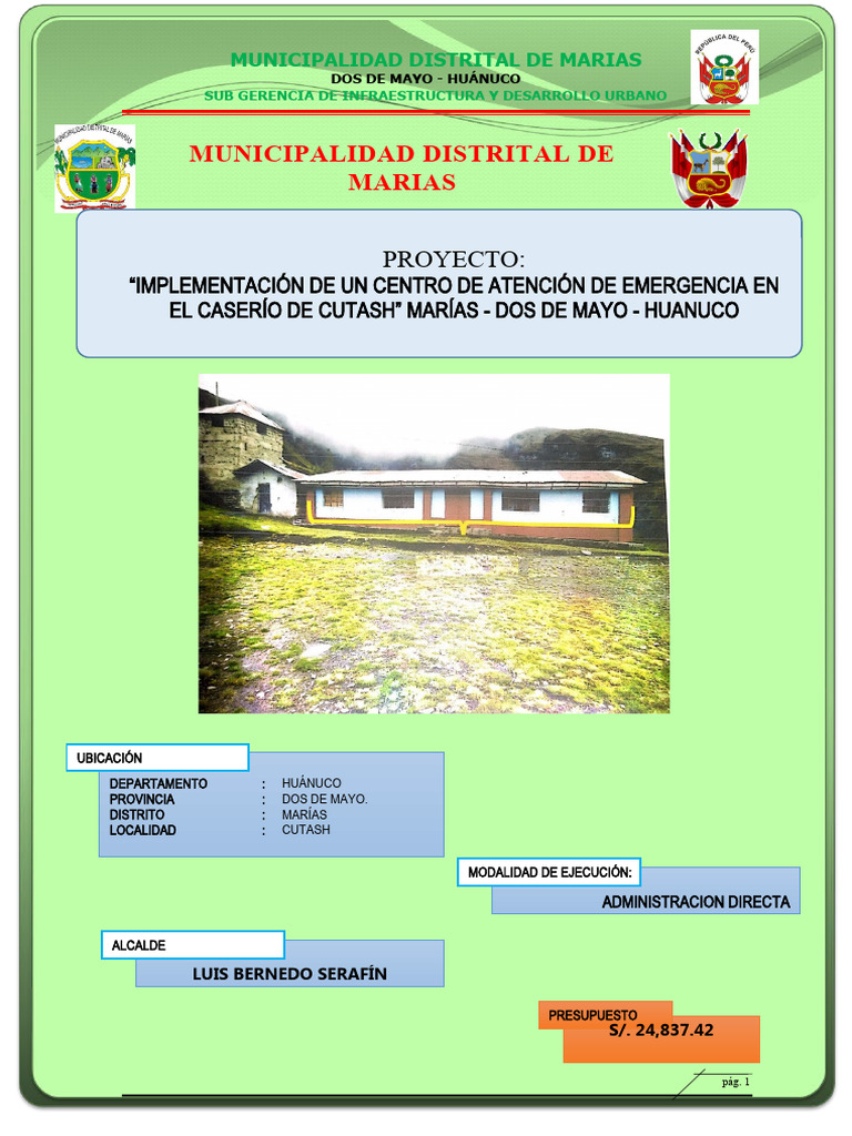 El provecto está ubicado en el distrito Marías - Provincia Dos de Mayo,