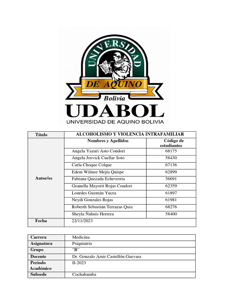 universitaria de Bolivia, ya que estos adultos jóvenes desarrollan dependencia al alcoholo con