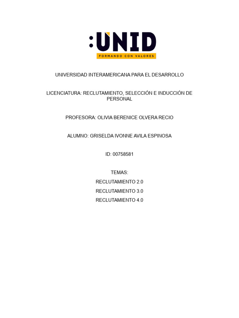 Tomaremos en especifico el reclutamiento 2.0, 3.0 y 4.0