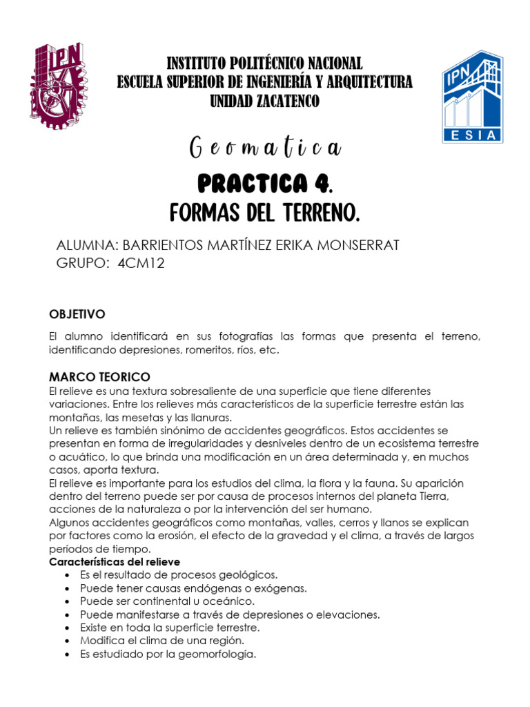 El alumno identificará en sus fotografías las formas que presenta el terreno,