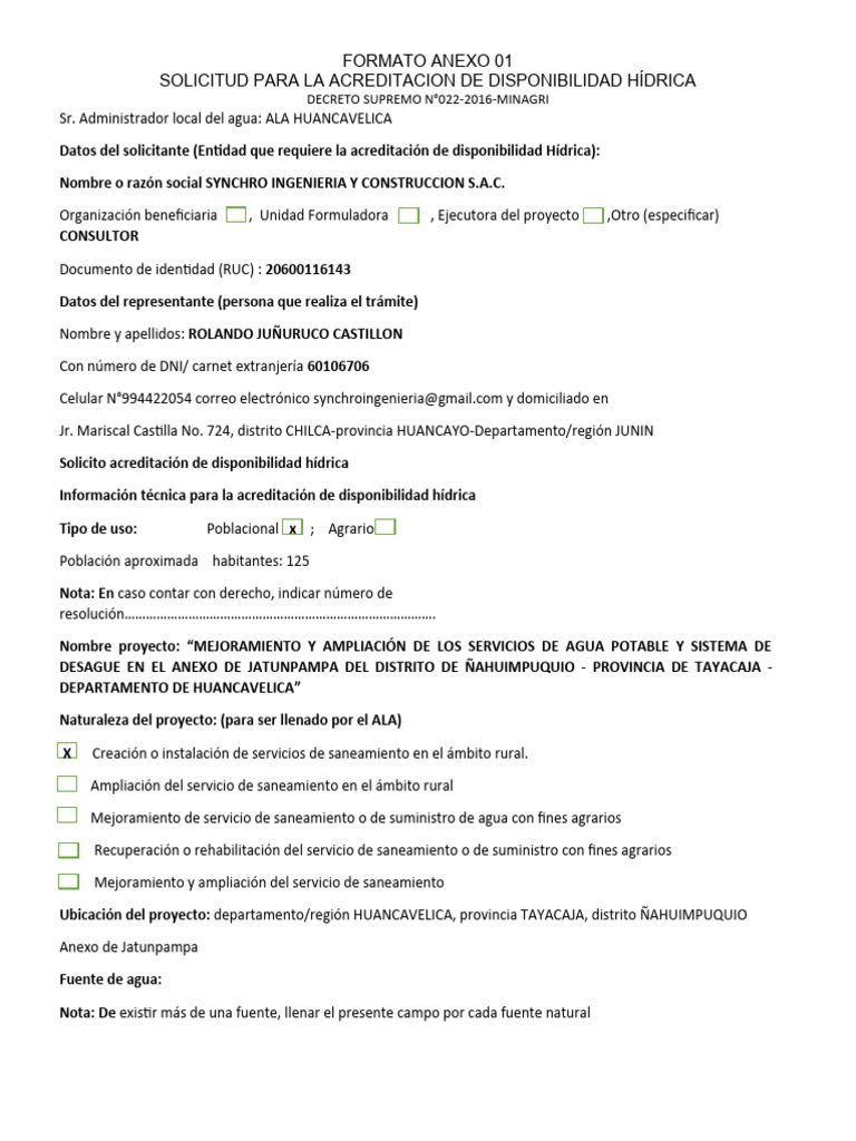 SOLICITUD PARA LA ACREDITACION DE DISPONIBILIDAD HÍDRICA