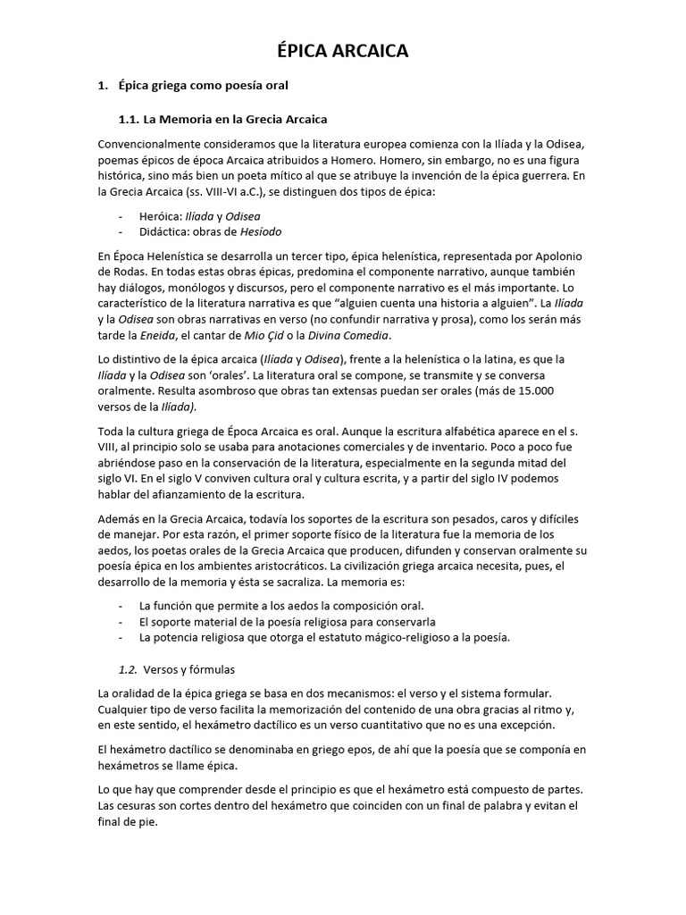 la Grecia Arcaica (ss. VIII-VI a.C.), se distinguen dos tipos de épica: