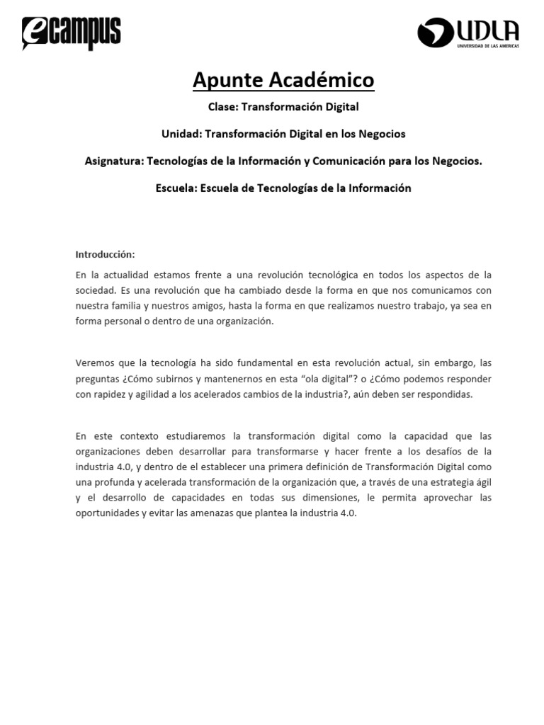 En este contexto estudiaremos la transformación digital como la capacidad que las