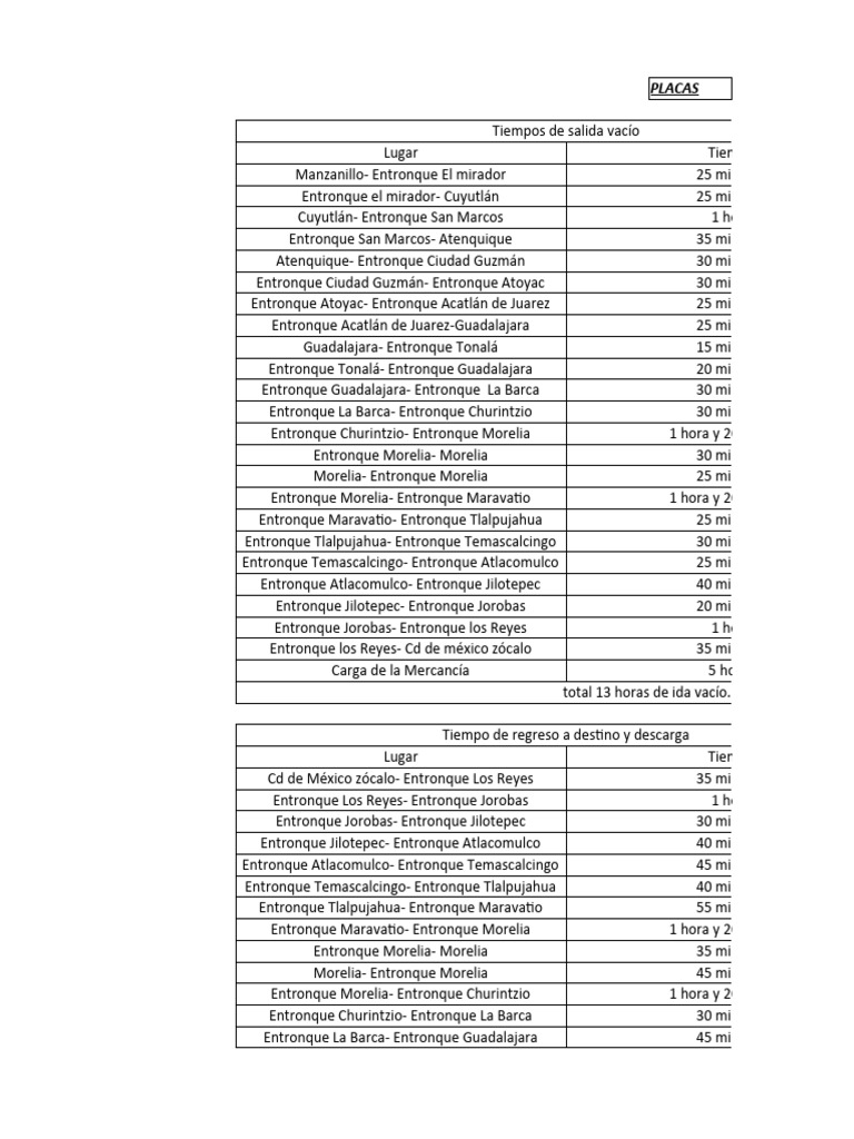 Tiempos de Ruta y Descarga de Placas