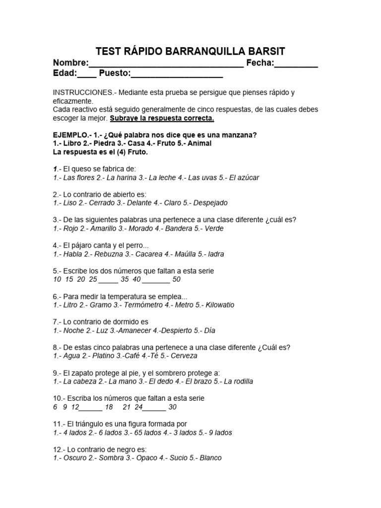 INSTRUCCIONES.- Mediante esta prueba se persigue que pienses rápido y