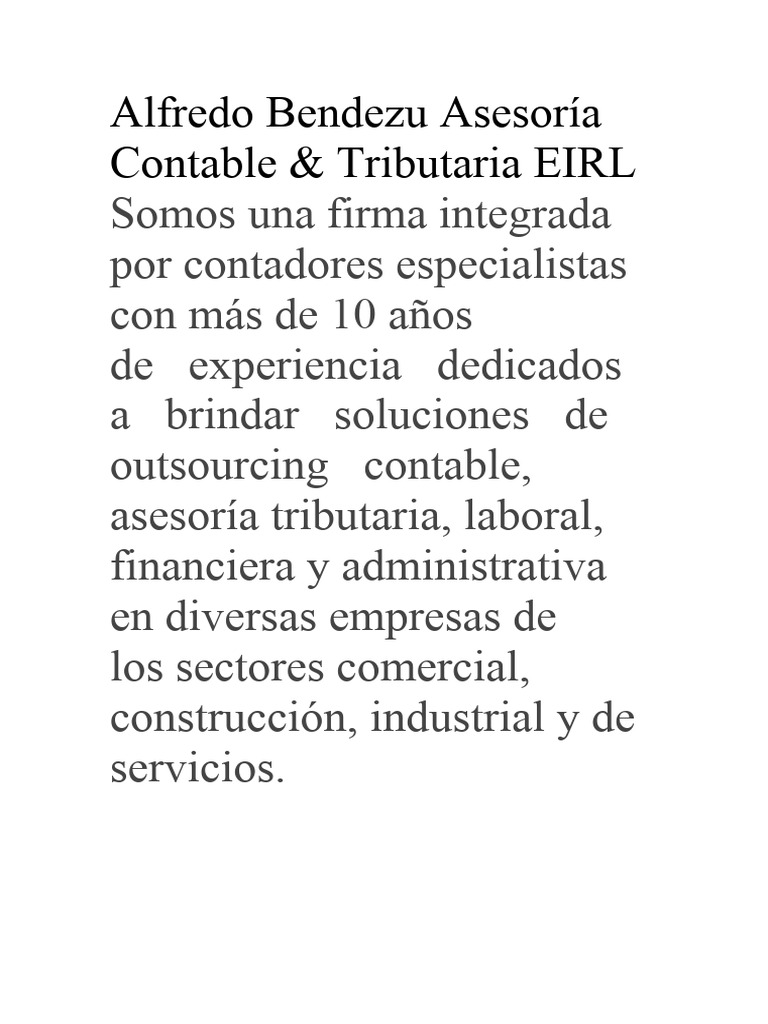 Alfredo Bendezu Asesoría Contable & Tributaria EIRL