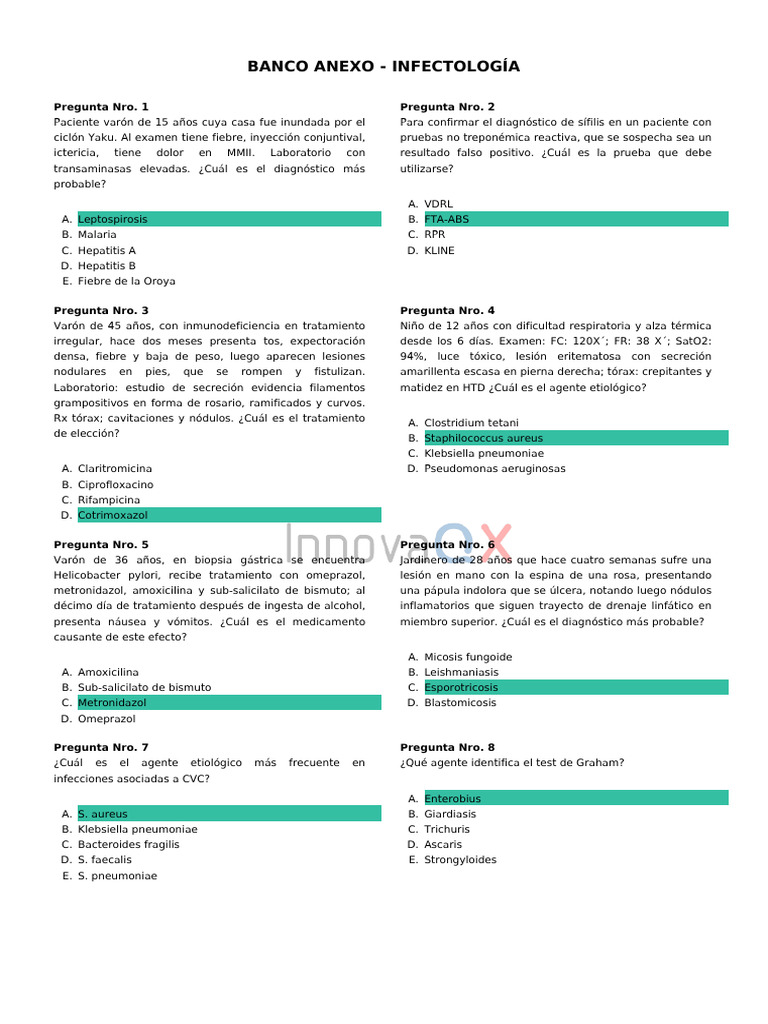 ropa interior. ¿Cuál es el agente causal de la 90 X´, FR: 22 X´, pálido, no adenopatías, MV presente en