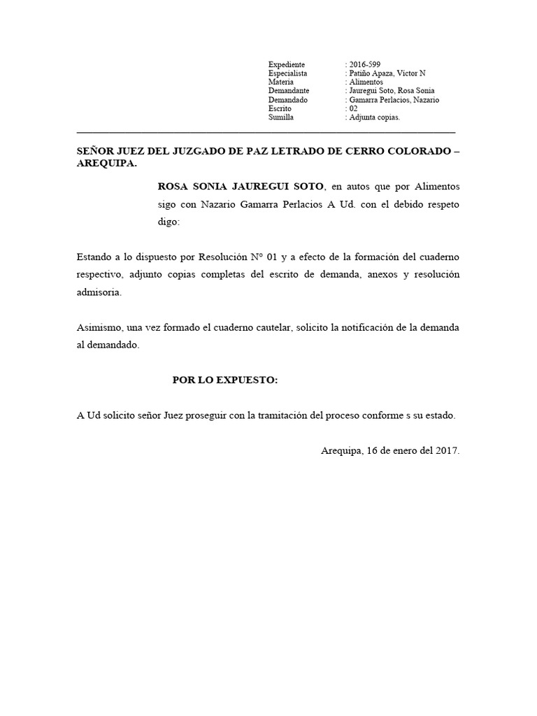 respectivo, adjunto copias completas del escrito de demanda, anexos y resolución