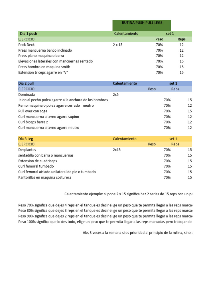 RUTINA PUSH PULL LEGS